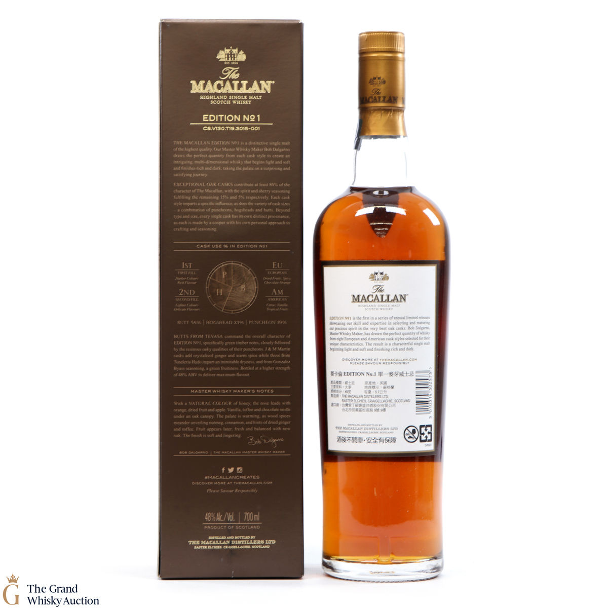 The Macallan Edition No. 1 is the debut expression in the Edition Series. This is a limited edition drawn from eight European and American oak cask styles selected for their unique characteristics.