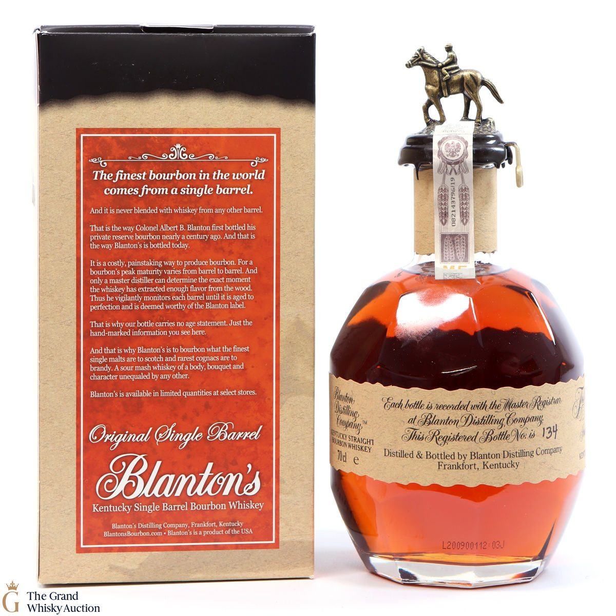 Blanton's Single Bourbon is normally 6 to 8-year-old bourbon, aged in Warehouse H at Buffalo Trace in the metal-clad warehouse at the distillery. The metal, transfers heat quicker than brick warehouses, allowing for faster ageing.