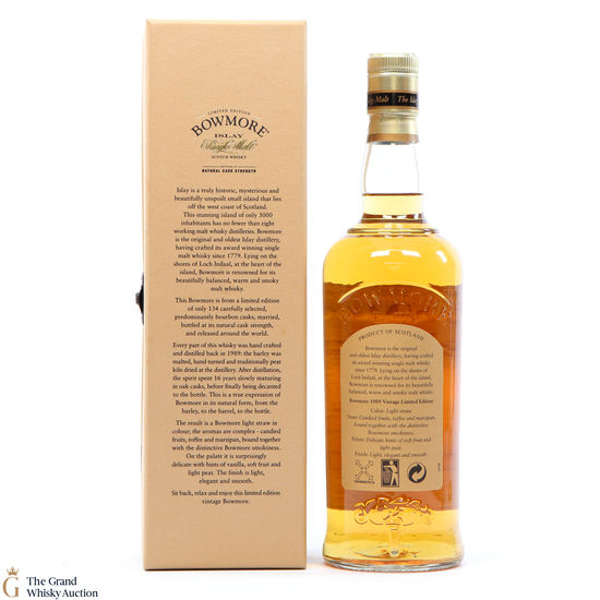 This Bowmore 1989 vintage is a limited edition, produced from 134 casks and released at the natural cask strength of 51.8%. The first of what has become a series of successful cask-strength Bowmore vintage releases.