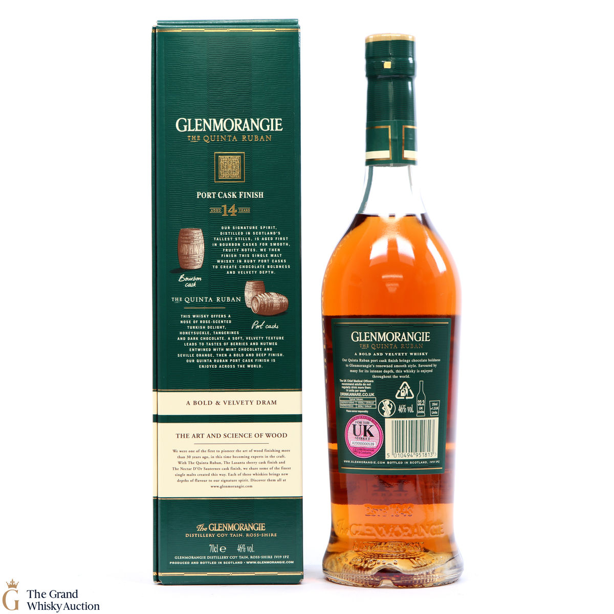 Glenmorangie Quinta Ruban is matured in bourbon casks before finishing in the finest Ruby Port casks from the "Quintas" or wine estates of Portugal. Ruban is Gaelic for Ruby.