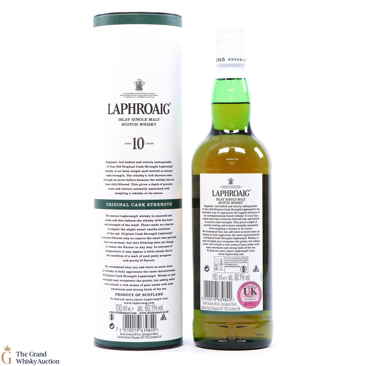 This bottling is from batch 012, original cask strength bottling of the medicinal 10 year old from Islay's bestselling distillery, Laphroaig. In making Laphroaig, malted barley is dried over a peat fire. The smoke from this peat, found only on Islay, gives Laphroaig its particularly rich flavour. This release was bottled at 60.1% in February 2020.
