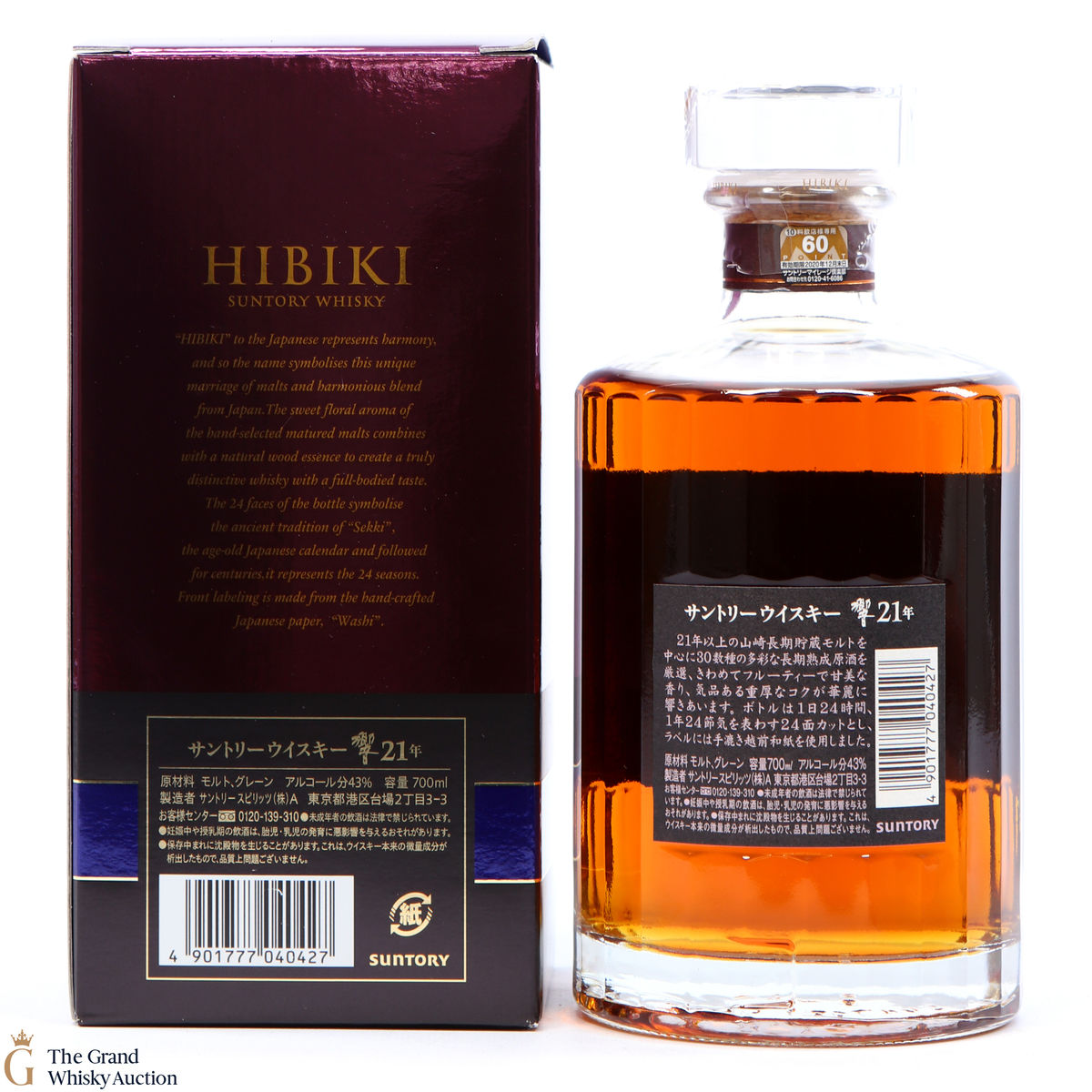 Hibiki 21 Year Old is a very popular blended whisky from Suntory. It is made up of a blend of specially selected mature malt and grain whiskies aged over 21 years. The key Yamazaki sherry casked malt is vatted with other carefully chosen mellow unblended grain whiskies over 21 years old.