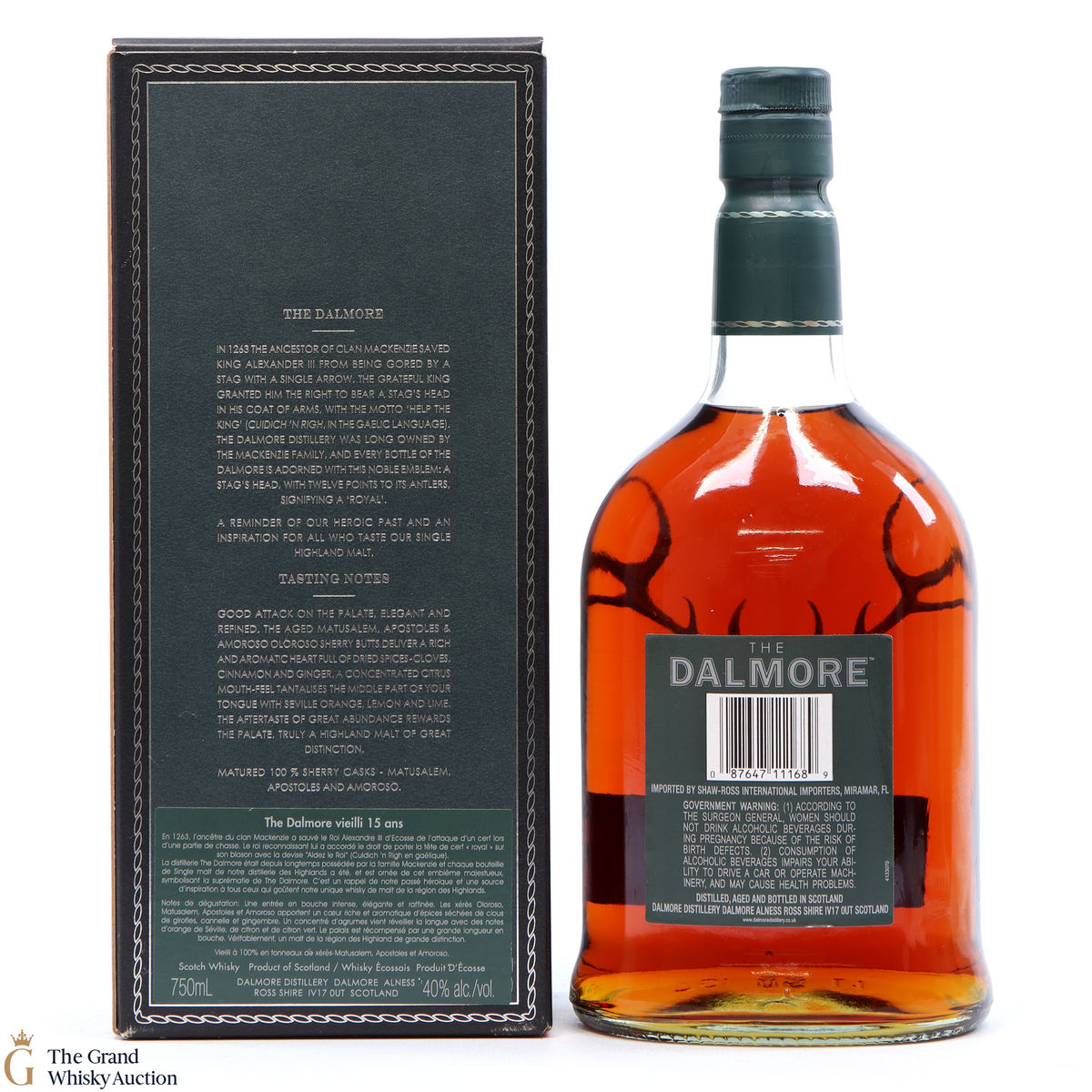 This Dalmore 15 year old was matured for 12 years in American white oak ex-bourbon casks and then a further maturation in three different sherry casks: Amoroso, Apostoles and Matusalem Oloroso.