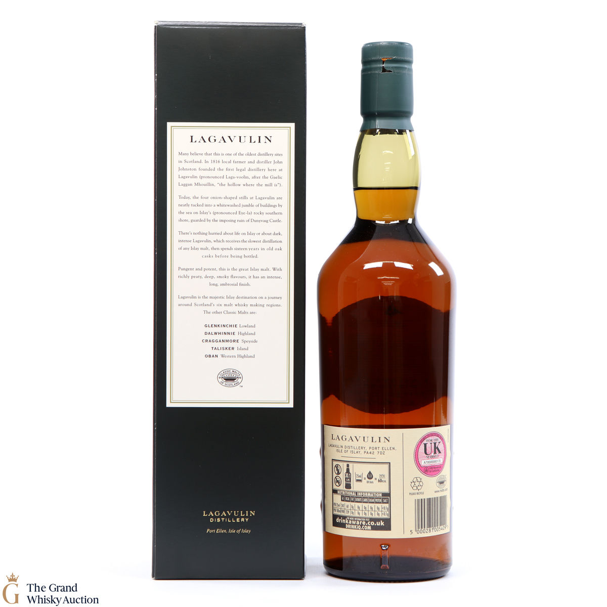 This is a popular and much sought-after single malt with the massive peat-smoke that's typical of southern Islay - but also offering richness and a dryness that turns it into a truly interesting tipple. The 16 year old, aged in oak casks has truly become a benchmark Islay dram from the Lagavulin distillery.