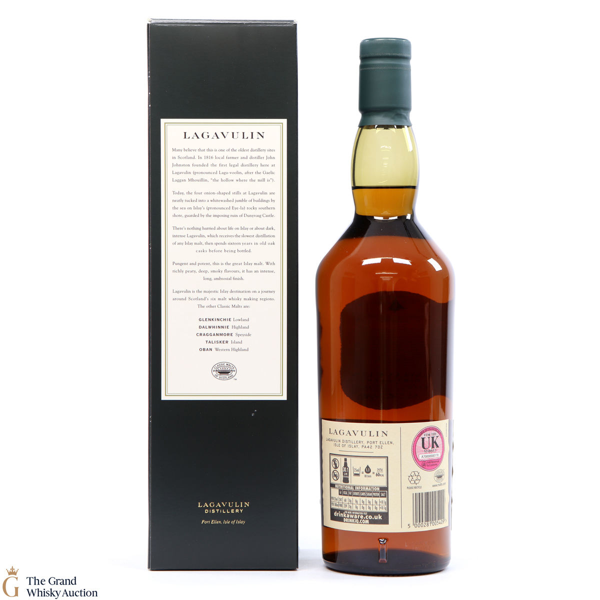 This is a popular and much sought-after single malt with the massive peat-smoke that's typical of southern Islay - but also offering richness and a dryness that turns it into a truly interesting tipple. The 16 year old, aged in oak casks has truly become a benchmark Islay dram from the Lagavulin distillery.
