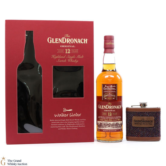 A beautiful gift set from GlenDronach, featuring a bottle of GlenDronach 12 Year Old along with a rather lovely hip flask from world-renowned tweed maker Walker Slater.