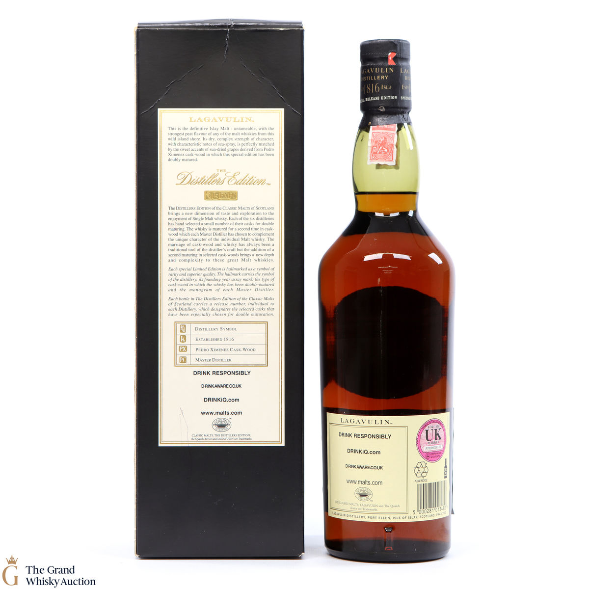 This Lagavulin Distillers Edition was distilled in 1994 before being bottled in 2010. This 16-year-old (ish) single malt whisky of the Classic Malts Selection was matured twice in European Pedro Ximenez Sherry oak casks - these give the whisky more fruity and syrupy character.