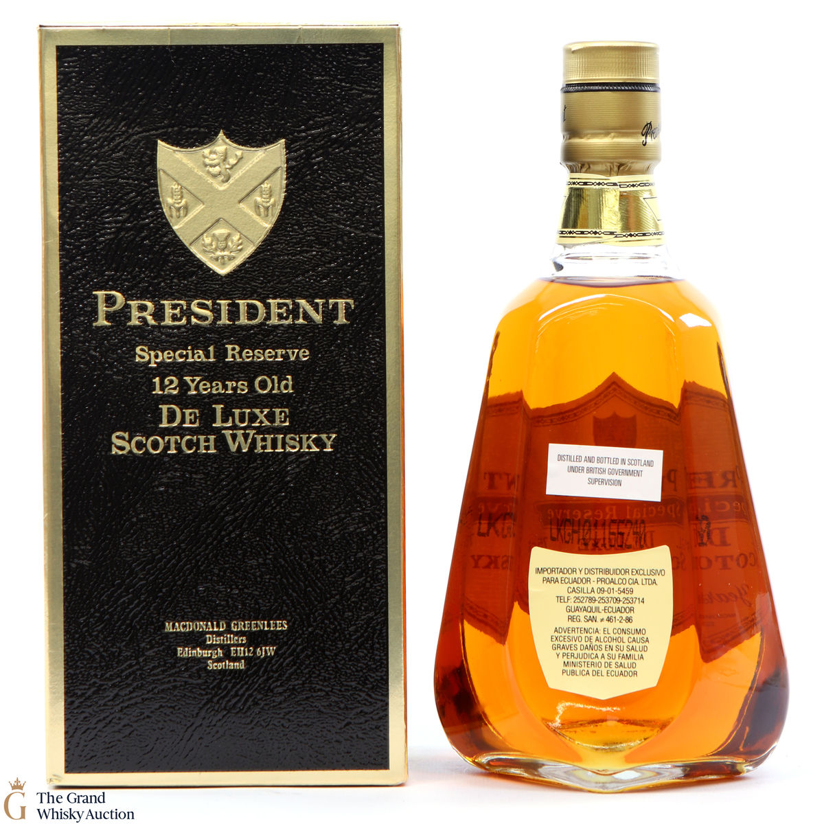 President 12 Year Old Special Reserve is a blended whisky from MacDonald Greenlees of Edinburgh, who are also well known for their Grand Old Parr blend.