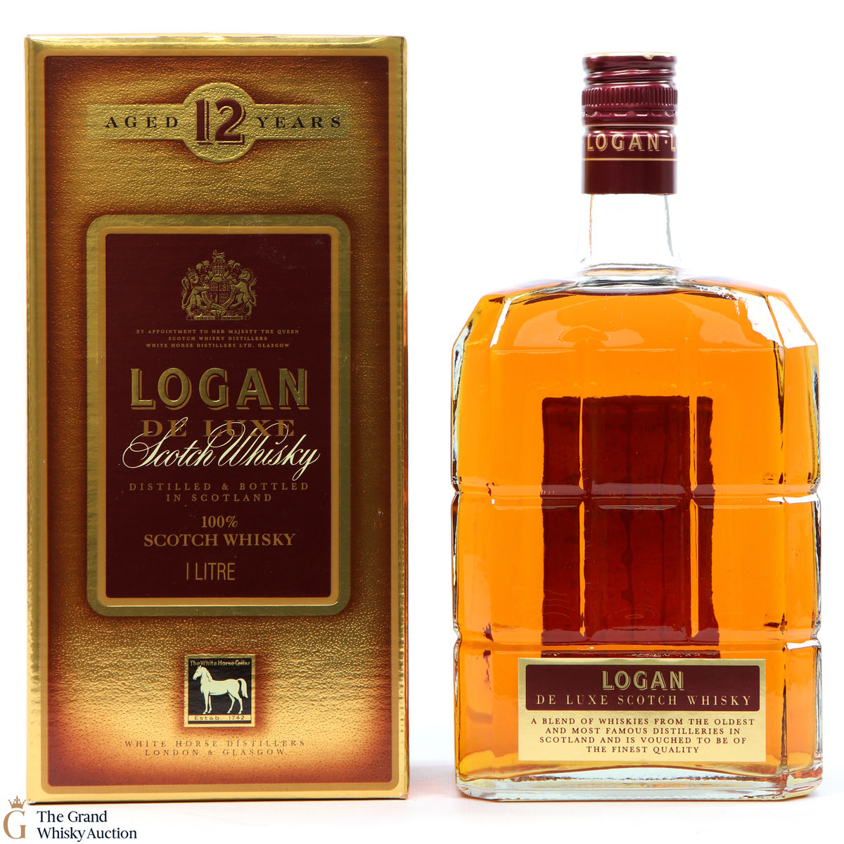 Logan De Luxe 12-Year-Old blended Scotch whisky, produced and bottled by White Horse Distillers.