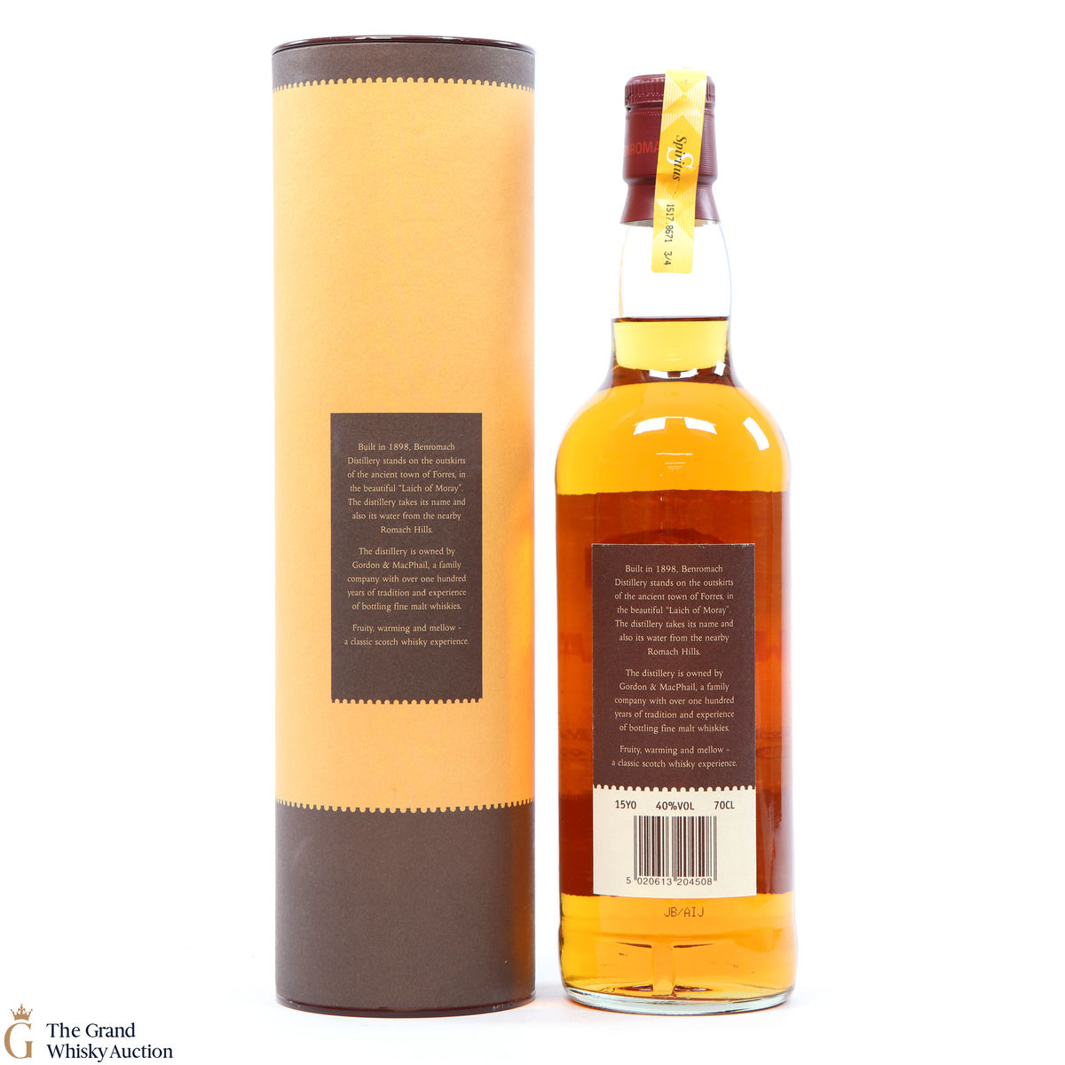 Due to the various ages of bottles and their seals, the condition of liquid is at the buyer's discretion and no claim can be lodged against failure/leakage in transit. Loss and breakage cover is available at 3% of the hammer price as standard. If the lot is not insured, no claim can be lodged against the courier or The Grand Whisky Auction for breakage or loss in transit.