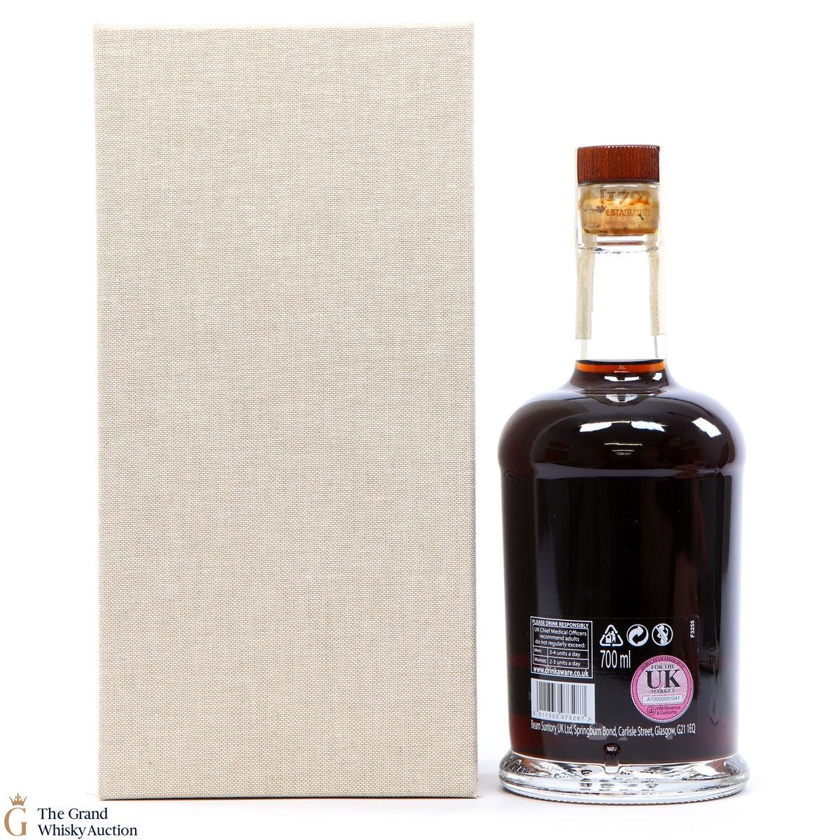 Due to the various ages of bottles and their seals, the condition of liquid is at the buyer's discretion and no claim can be lodged against failure/leakage in transit. Loss and breakage cover is available at 3% of the hammer price as standard. If the lot is not insured, no claim can be lodged against the courier or The Grand Whisky Auction for breakage or loss in transit.
