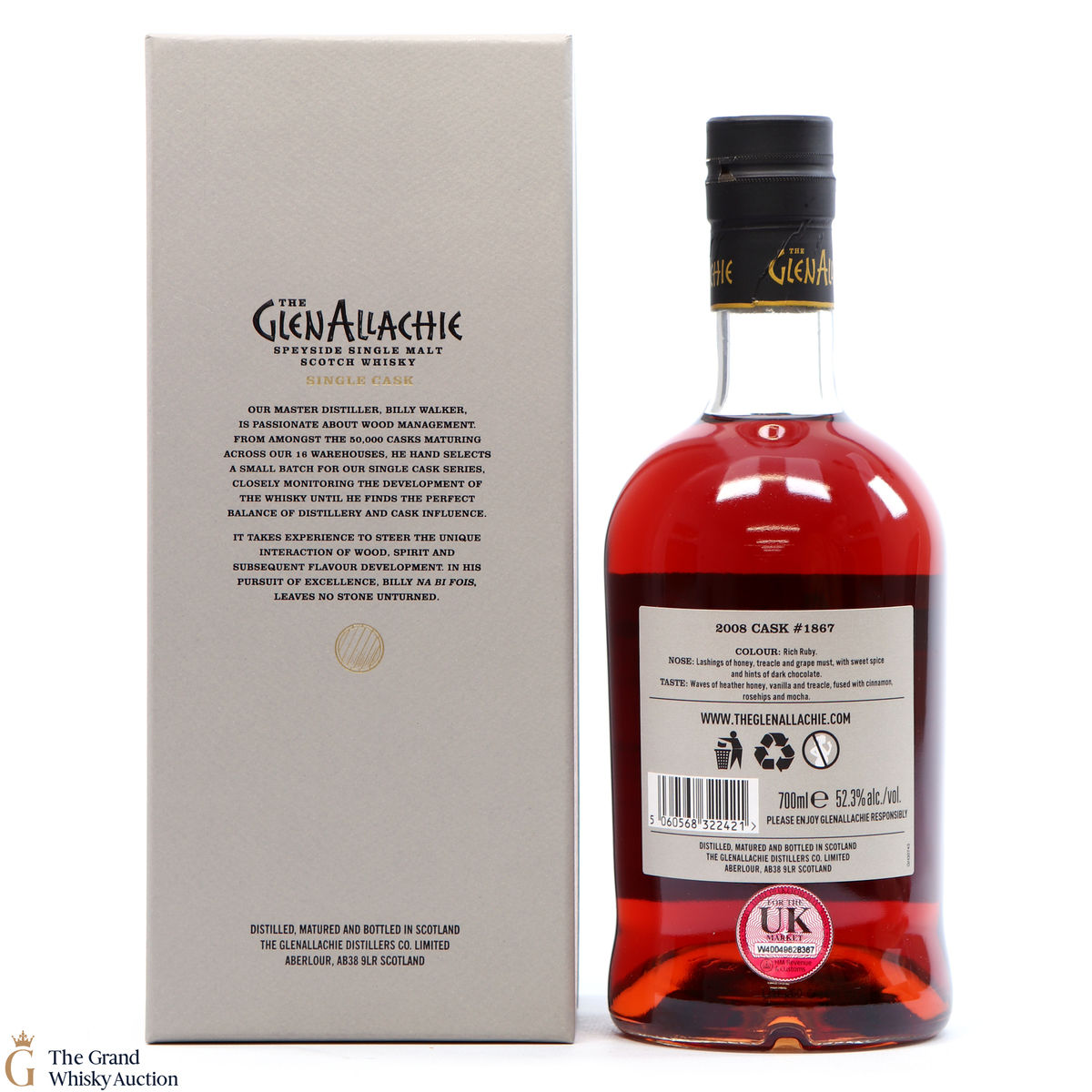 Glenallachie cask #1867 was matured for 12 years in a Ruby Port Pipe and was bottled in August 2020. Only 700 bottles were produced.