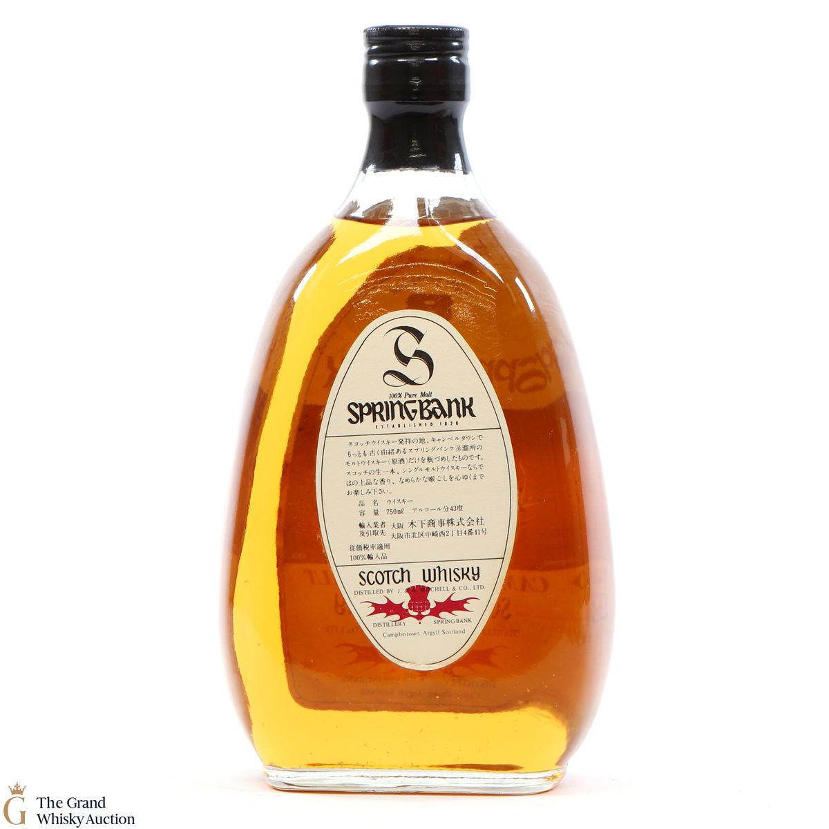 Due to the various ages of bottles and their seals, the condition of liquid is at the buyer's discretion and no claim can be lodged against failure/leakage in transit. Loss and breakage cover is available at 3% of the hammer price as standard. If the lot is not insured, no claim can be lodged against the courier or The Grand Whisky Auction for breakage or loss in transit.