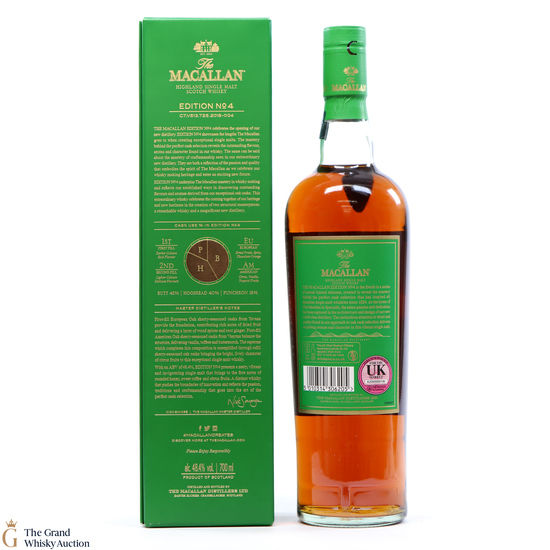 The fourth release in the Edition Series from The Macallan, this Speyside single malt is a celebration of the distillery's whisky making heritage, combining a unique selection of oak cask styles. Edition No.4 reflects the craftsmanship and pioneering design of the new Macallan distillery.