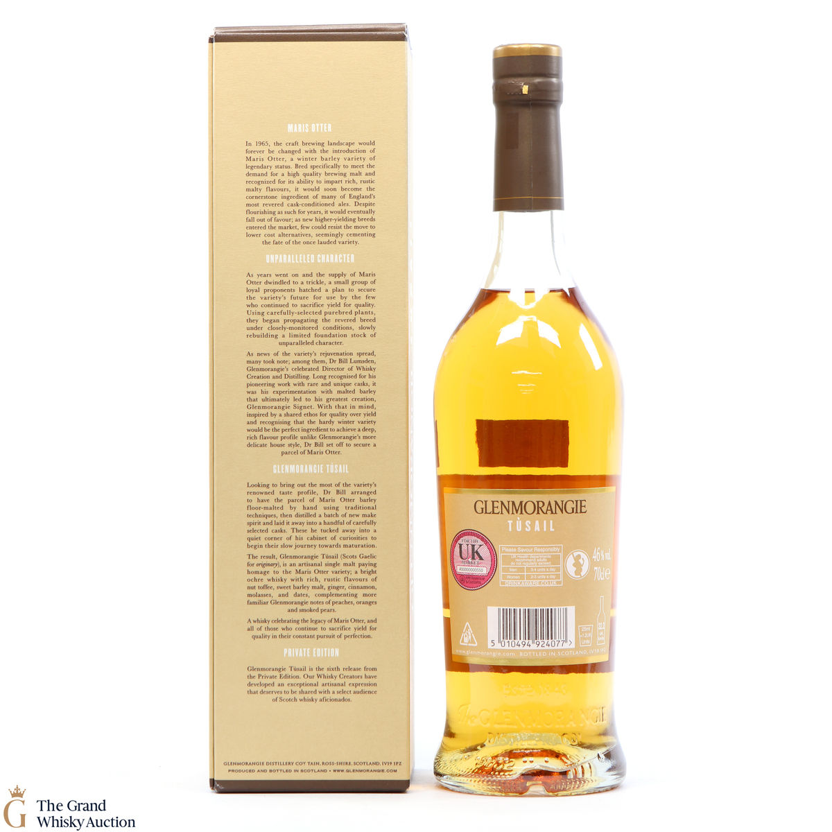 Tusail is the sixth entry in Glenmorangie's Private Collection. Made using traditionally floor-malted Maris Otter barley, this is an old-fashioned whisky backed up by Glenmorangie's modern approach to whisky-making.