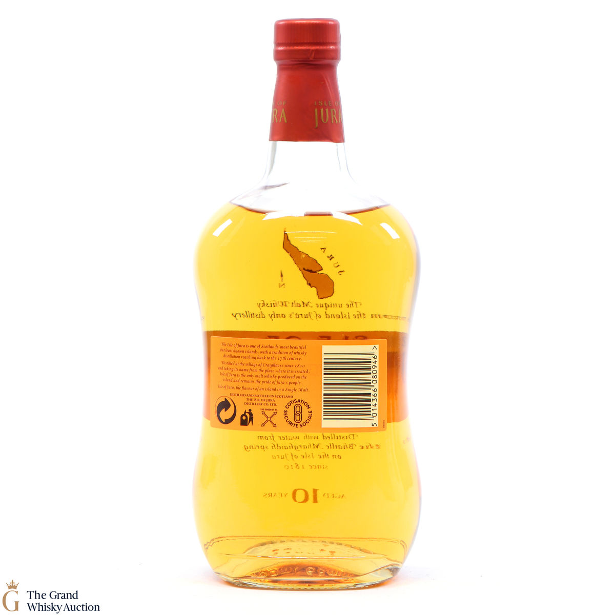 A bottle of Jura 10 Year Old. Originally built in 1810, the distillery fell into disrepair and wasn't revived until the 1960's by two local estate owners.
