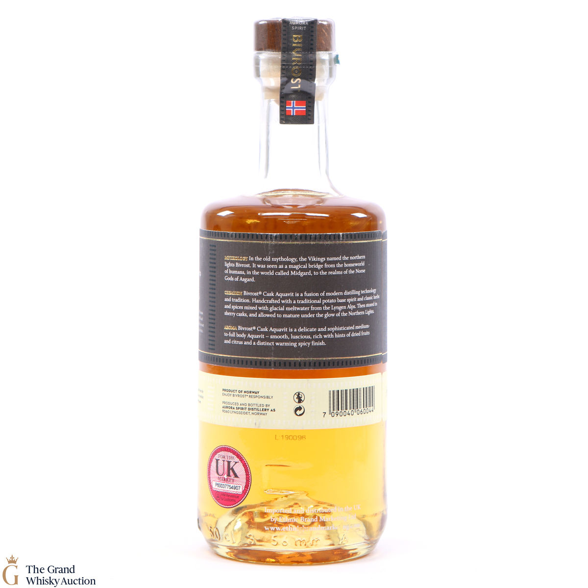 Brivrost Aquavit was distilled in Arctic Norway, blended with glacier water, matured in carefully selected sherry casks and allowed to mature in extensive underground storage vaults which were previously part of a network of tunnels in a Cold War NATO base. This is a 50cl bottle.