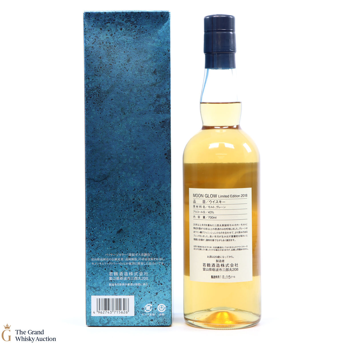 Moon Glow Limited Edition 2019 from the Wakatsuru Brewery, a blended whisky primarily created with 20-year malt and blended with others at least 10 years of age. in this annual release, the grain component was finished in red wine casks.