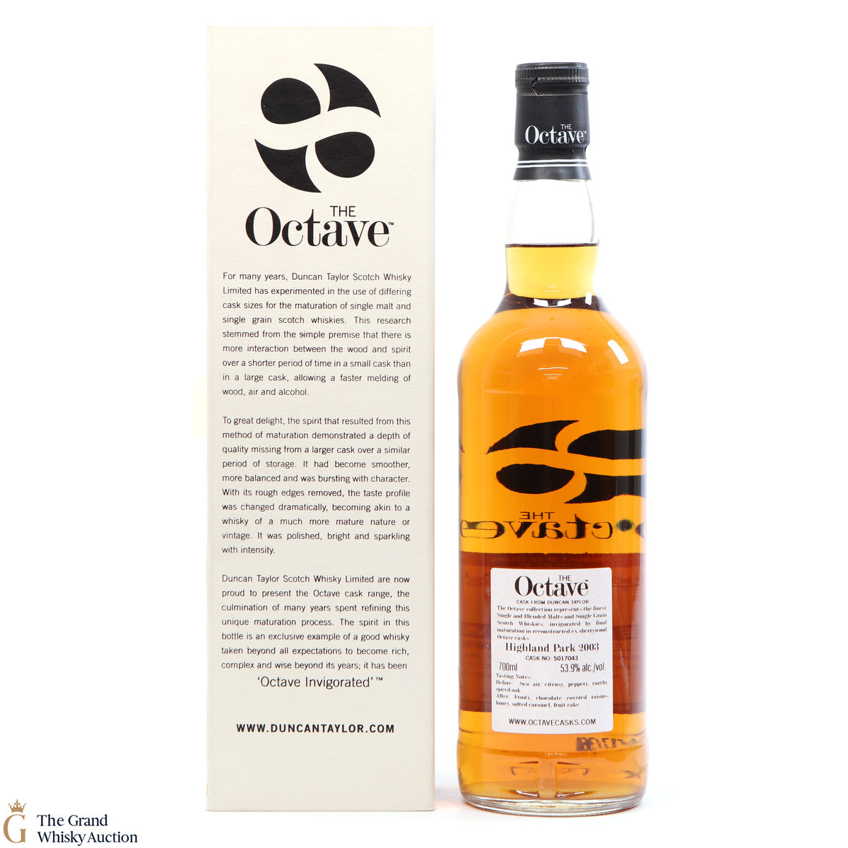 Highland Park 2003 was matured for 14 years in oak casks, then spent 3 months in Octave cask #5017043. It was bottled in 2017 by Duncan Taylor for their The Octave series. This is one of only 65 bottles produced.