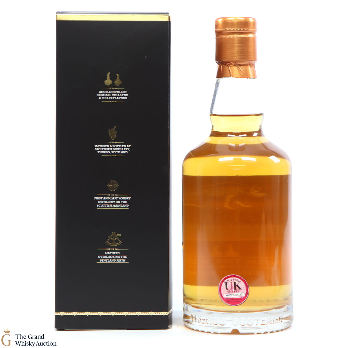 Due to the various ages of bottles and their seals, the condition of liquid is at the buyer's discretion and no claim can be lodged against failure/leakage in transit. Loss and breakage cover is available at 3% of the hammer price as standard. If the lot is not insured, no claim can be lodged against the courier or The Grand Whisky Auction for breakage or loss in transit.