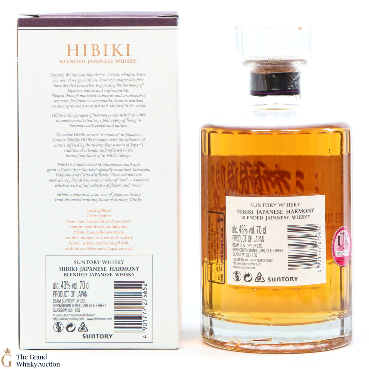 Hibiki Japanese Harmony is made with malt whiskies from the Yamazaki and Hakushu distilleries, as well as grain whisky from the Chita distillery. The whiskies are drawn from 5 different types of cask, including American white oak casks, Sherry casks and Mizunara oak casks. The blend itself was crafted by the Suntory Whisky blending team, led by Master Blender Shingo Torii. An elegant expression, with wafts of honey, orange, a herbaceous touch or two and light oak