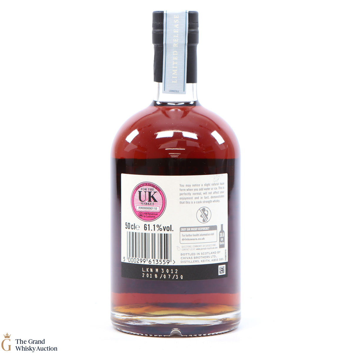 Due to the various ages of bottles and their seals, the condition of liquid is at the buyer's discretion and no claim can be lodged against failure/leakage in transit. Loss and breakage cover is available at 3% of the hammer price as standard. If the lot is not insured, no claim can be lodged against the courier or The Grand Whisky Auction for breakage or loss in transit.