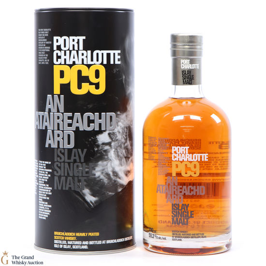 Port Charlotte/PC9 (produced by Bruichladdich) is a heavily peated spirit.