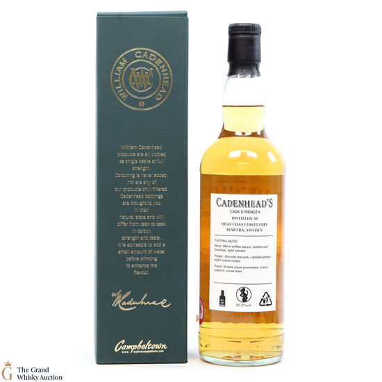 High Coast 7 Year Old is a Swedish single malt whisky from High Coast Distillery in Bjartra Sweden. This single American oak barrel was bottled in 2020 by Cadenhead's for the World Whiskies series. This is one of just 222 bottles.