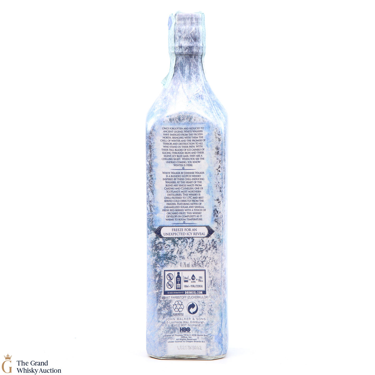 Due to the various ages of bottles and their seals, the condition of liquid is at the buyer's discretion and no claim can be lodged against failure/leakage in transit. Loss and breakage cover is available at 3% of the hammer price as standard. If the lot is not insured, no claim can be lodged against the courier or The Grand Whisky Auction for breakage or loss in transit.