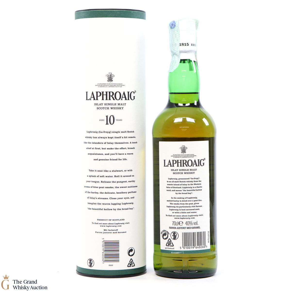 A 70cl of the medicinal 10 year old from Islay's bestselling distillery, Laphroaig. In making Laphroaig, malted barley is dried over a peat fire. The smoke from this peat, found only on Islay, gives Laphroaig its particularly rich flavour.