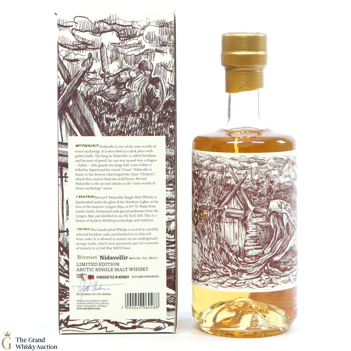 This is a limited edition bottle created in Arctic Norway was 'handcrafted under the Northern Lights'. Matured in bourbon casks and given a finishing period of 5-6 months in nicely seasoned, well-travelled casks. Bivrost Nidavellir is the second Whisky in the “nine worlds of Norse mythology” series. This is a 50cl bottling.