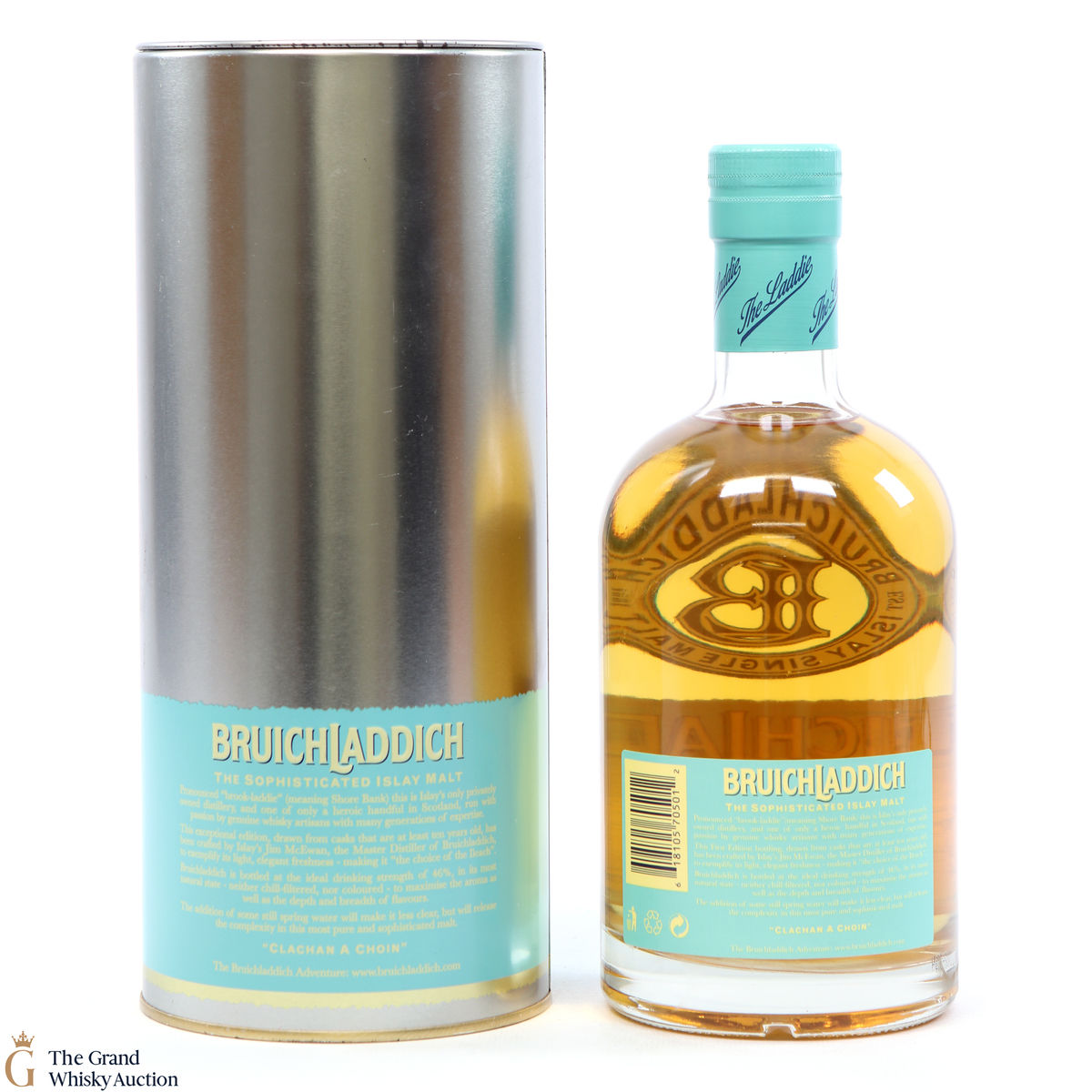 This 10-year-old Islay single malt from Bruichladdich comes complete with presentation tin tube. This edition is the old style and now discontinued packaging that has been replaced by the 'Laddie Ten'.