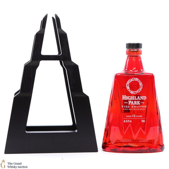 This stunning Highland Park 15 year old single malt follows the 'Ice' edition to complete this Highland Park two-part series. The 'Fire' edition celebrates Muspelheim, the glowing Norse fire realm of destruction. The malt was matured in refill Port casks and bottled at 45.2% abv. It's presented in a cradle shaped like a mountain.