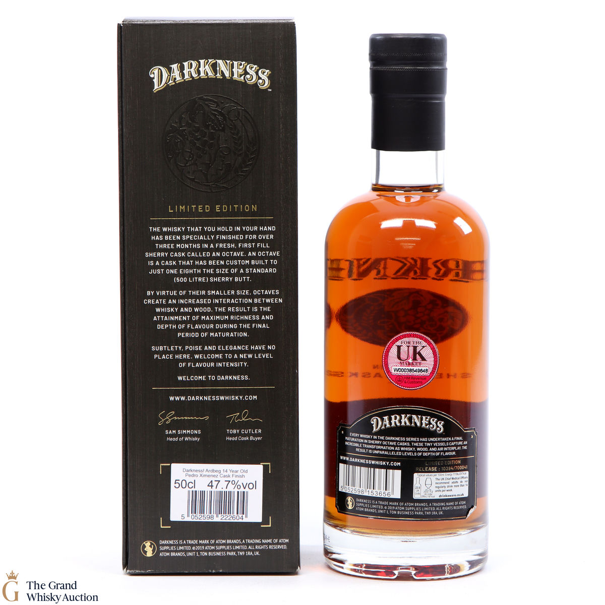 This Darkness independent release of a 14 year old Ardbeg single malt. There was a finishing period in a PX sherry octave cask! The smaller cask is said to increase interaction between the whisky and the cask.
