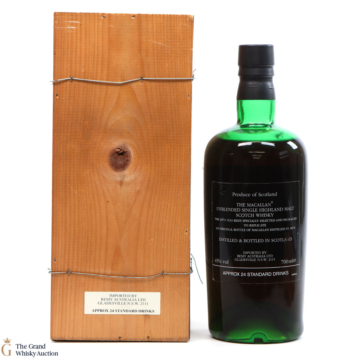 This Macallan Replica was the first edition in the Macallan Replica series. It is modelled on a bottle from 1874. This has been carfully crafted to resemble the whisky of that time, both in appearance and flavour.