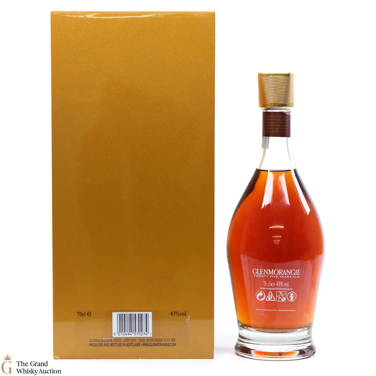 Possibly one of Glenmorangie's most striking presentations of a 25 year old whisky. A golden box to match the liquid within that has been matured in both sherry and Burgundy casks.