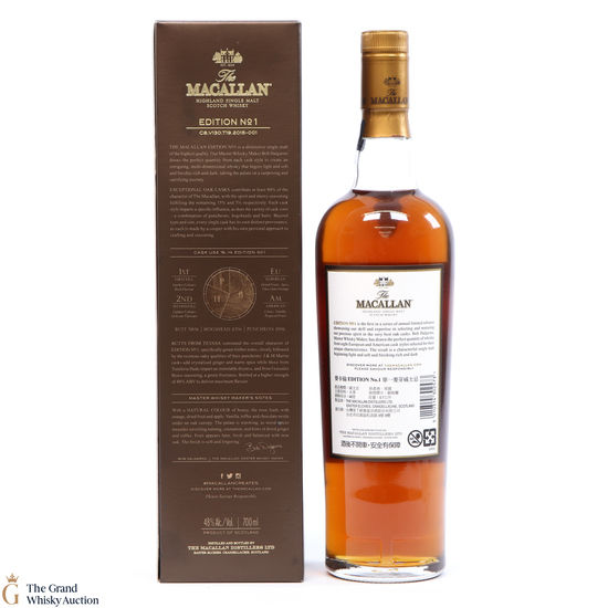 The Macallan Edition No. 1 is the debut expression in the Edition Series. This is a limited edition drawn from eight European and American oak cask styles selected for their unique characteristics.