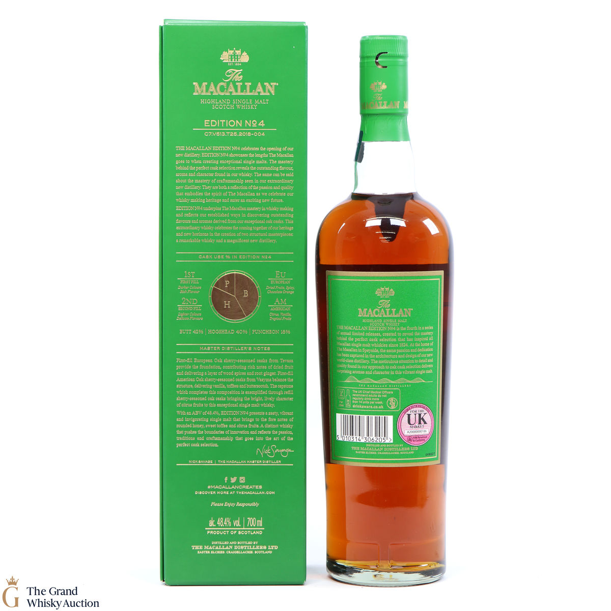 The fourth release in the Edition Series from The Macallan, this Speyside single malt is a celebration of the distillery's whisky making heritage, combining a unique selection of oak cask styles. Edition No.4 reflects the craftsmanship and pioneering design of the new Macallan distillery.