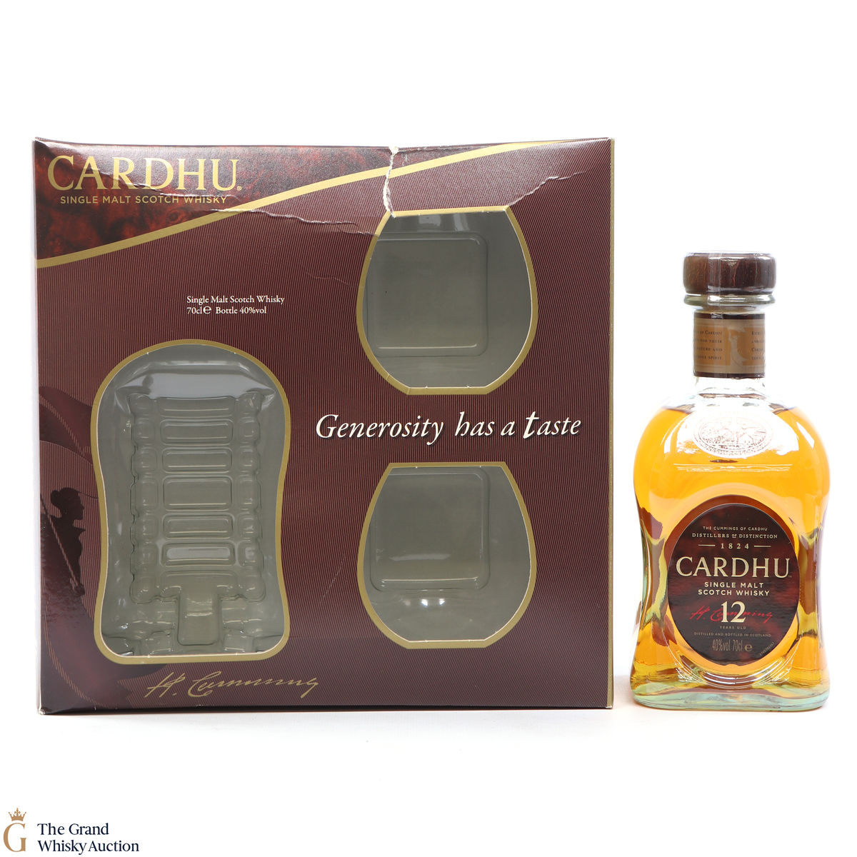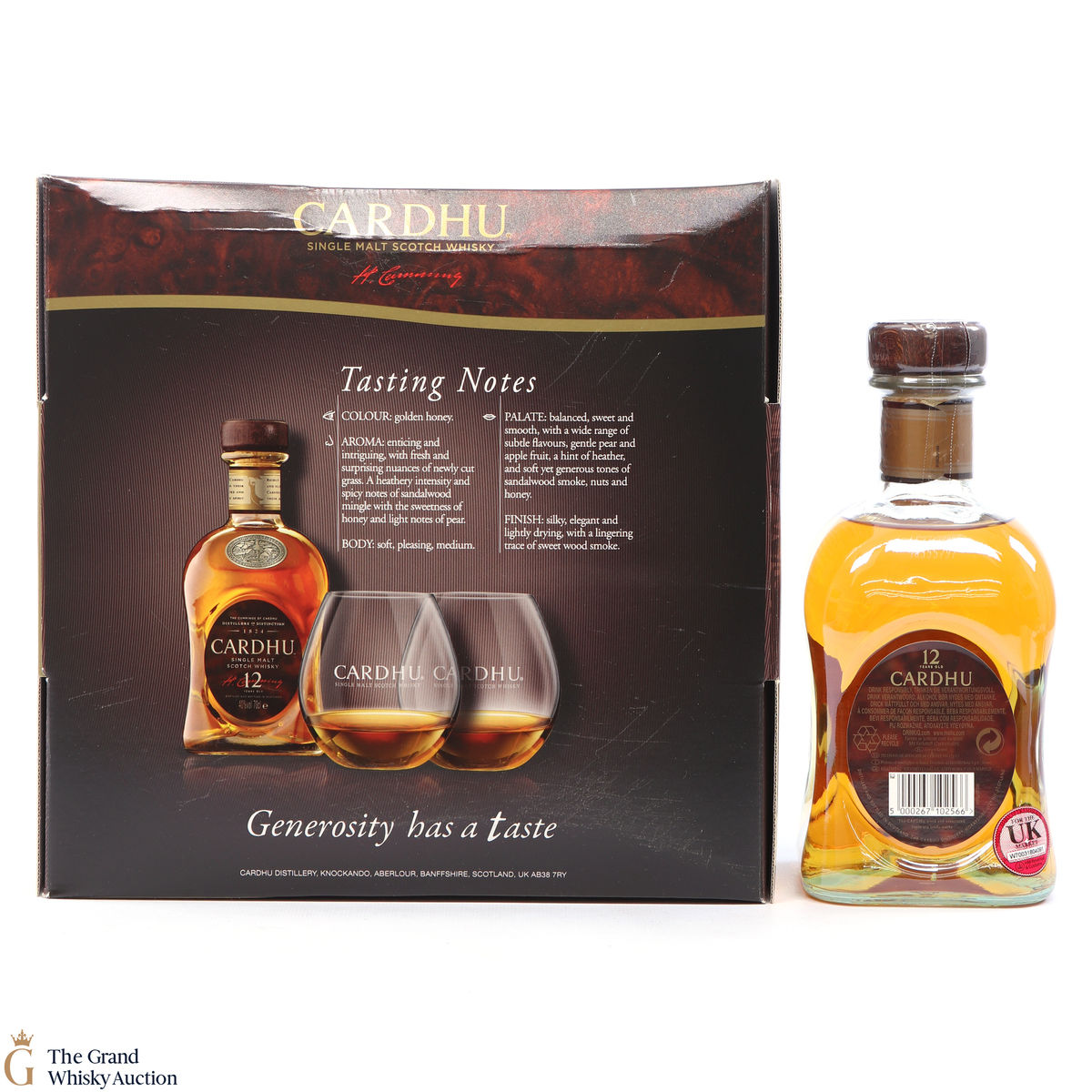 Cardhu 12-year-old single malt whisky from Speyside, Scotland. This single malt was purely produced at the distillery in Morayshire, Scotland. Although recognised as a Speyside whisky, they actually advertise being Highland Scotch Whisky.