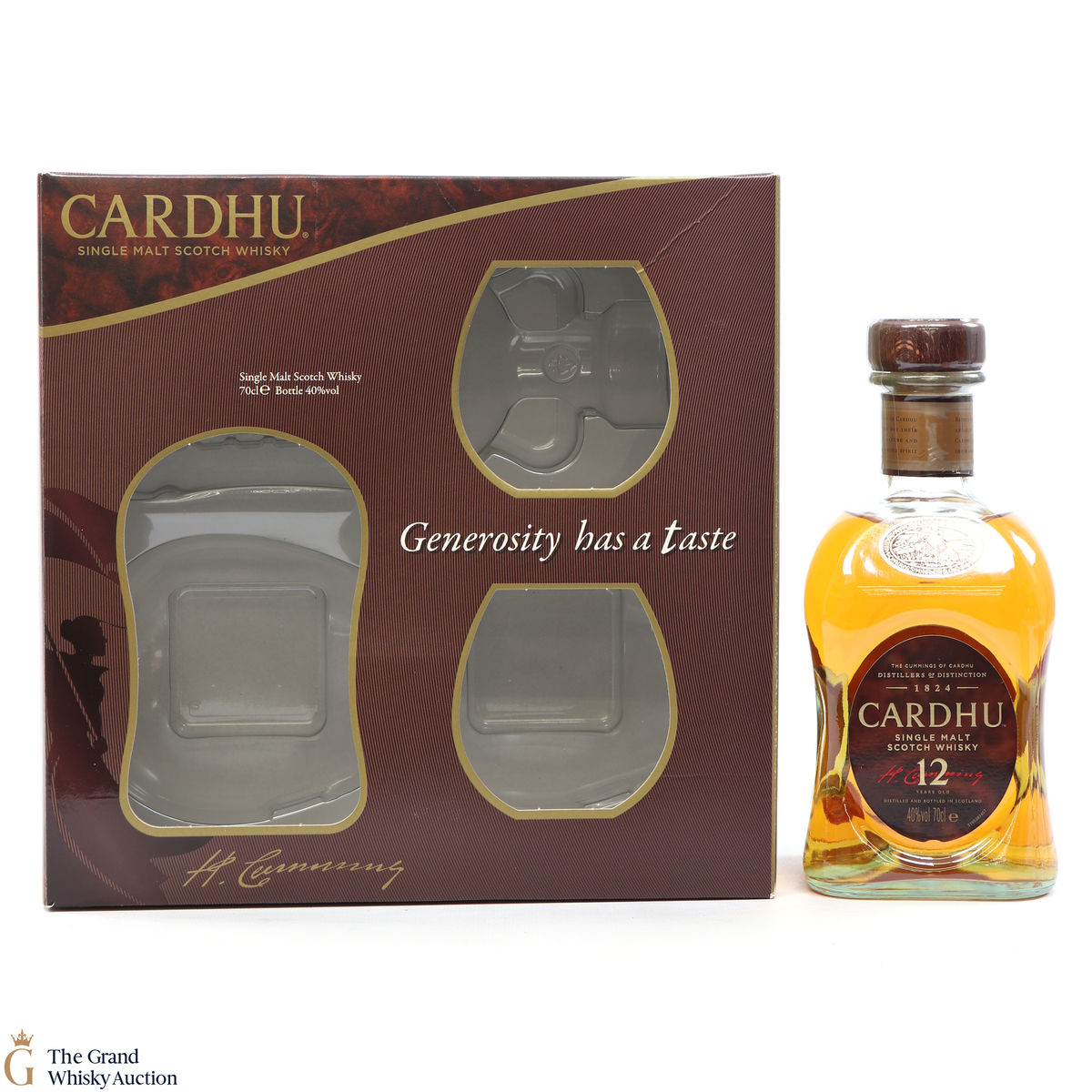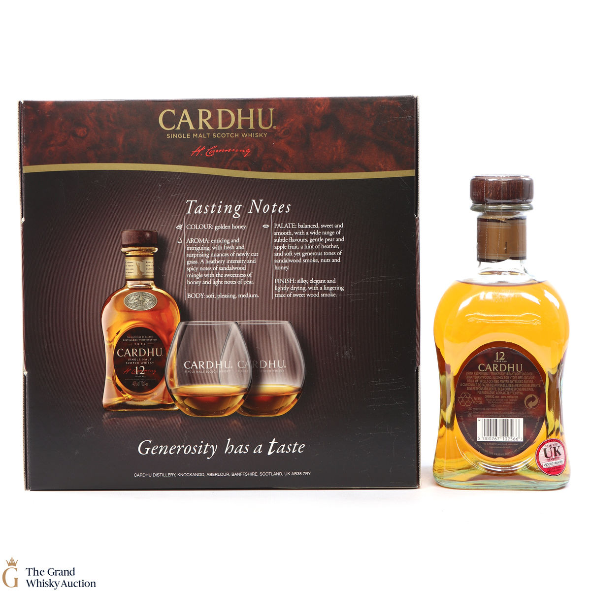 Cardhu 12-year-old single malt whisky from Speyside, Scotland. This single malt was purely produced at the distillery in Morayshire, Scotland. Although recognised as a Speyside whisky, they actually advertise being Highland Scotch Whisky.