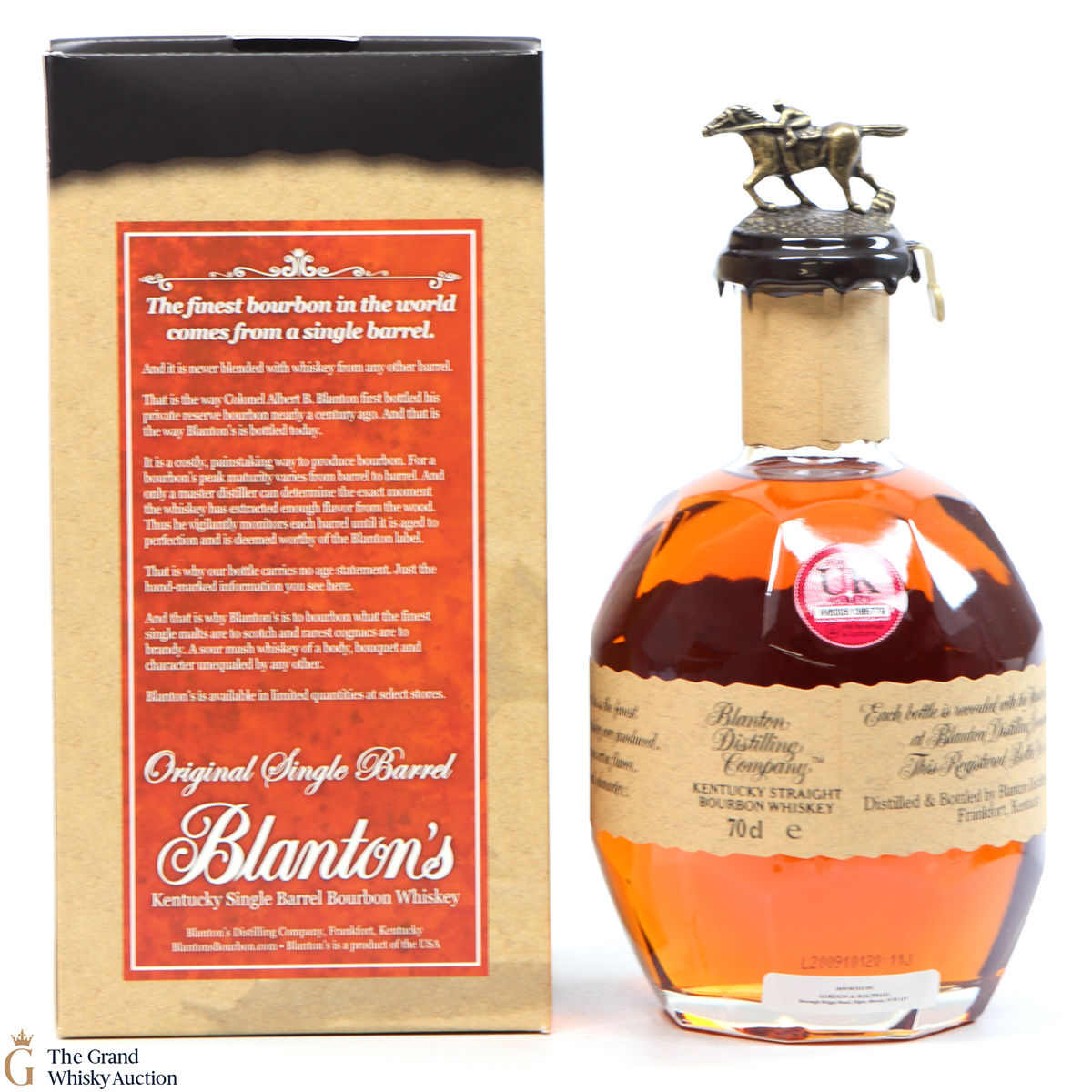 Blanton's Single Bourbon is normally 6 to 8-year-old bourbon, aged in Warehouse H at Buffalo Trace in the metal-clad warehouse at the distillery. The metal, transfers heat quicker than brick warehouses, allowing for faster ageing.