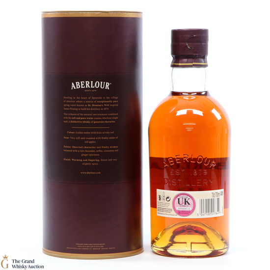 This Aberlour 12 Year Old, has been double cask matured in two handmade oak cask types. The double maturation both traditional oak and sherry casks adds depth of character to this single malt, now bottled at 40% abv.