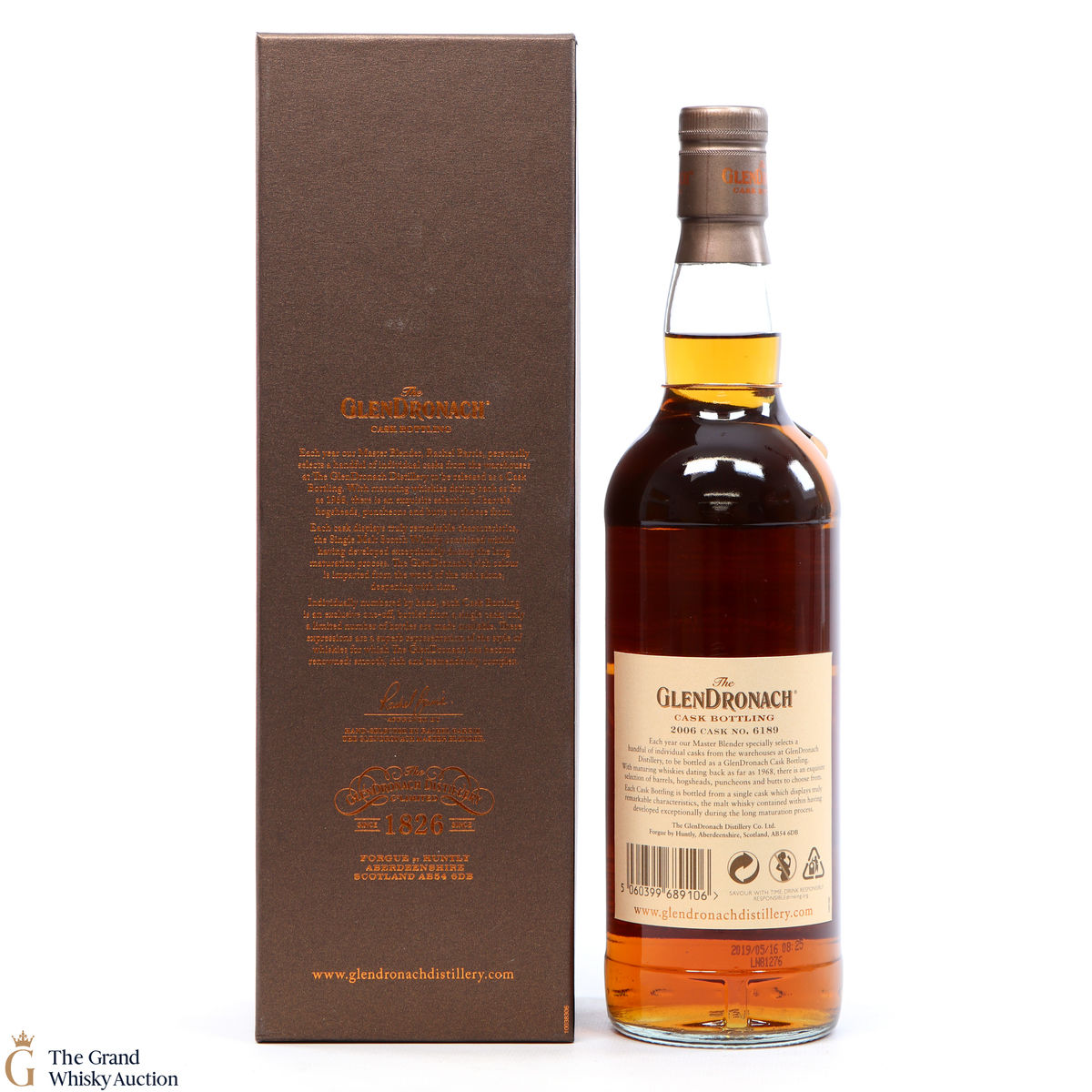 This 2006 bottle of Glendronach is part of their single cask bottling series. Selected for Heathrow Airport and World of Whiskies. Distilled in January 2006 and matured for 13 years in a Pedro Ximenez butt #6189. Bottled in 2019, this is one of only 667 bottles filled.