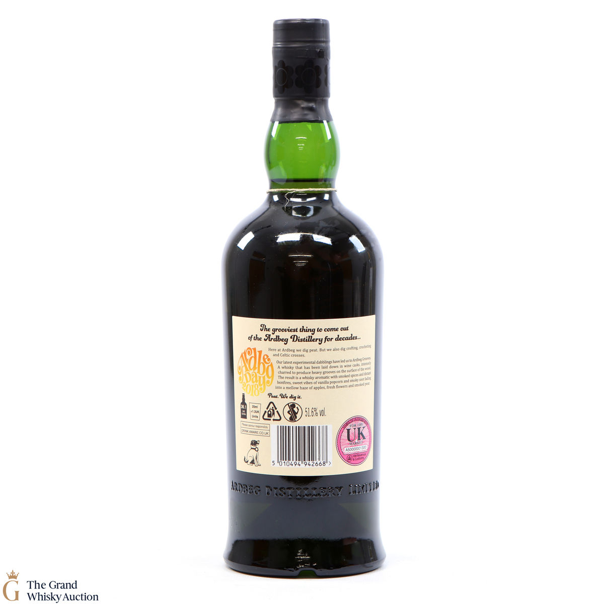 This limited edition Islay single malt was released to mark the 2018 Ardbeg Day at the Islay Festival of Music & Malt. The theme is a throwback to the Island's 1960s spirit, embodying the ideals of 'peat & love'! Ardbeg Grooves is crafted with ex-wine casks that are re-charred to create heavy grooves in the wood, allowing more interaction with the spirit and creating a richer flavour.