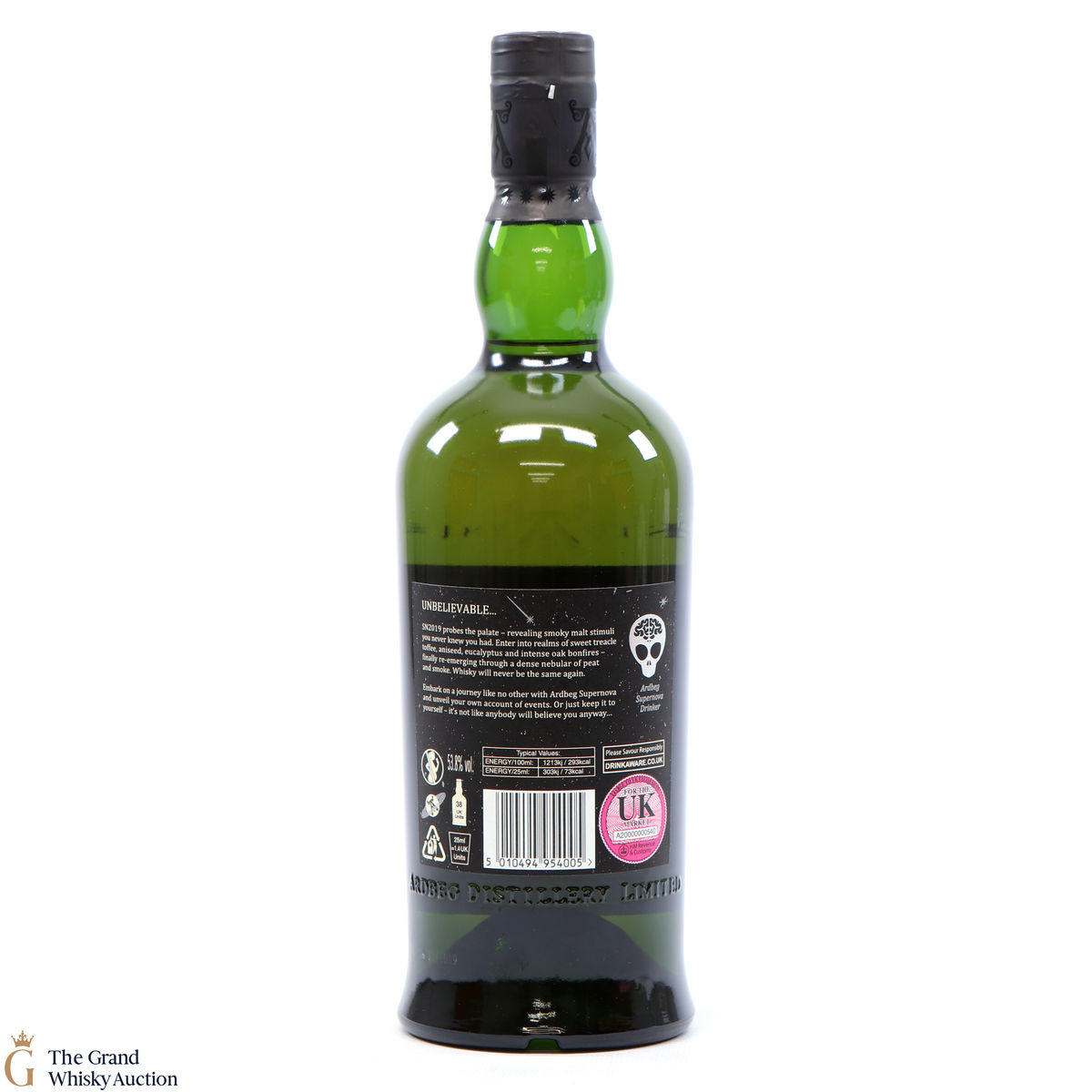 Excluisvley released to Ardbeg Committee members in September 2019, this is the fifth and latest release of the Ardbeg Supernova. Matured in ex-Bourbon casks, this limited edition, non-age- statement release is described as having aromas of ‘pungent aniseed, menthol and eucalyptus’, with a ‘nebula of bonfires, soot, charred oak, birch tar and menthol’ on the palate.