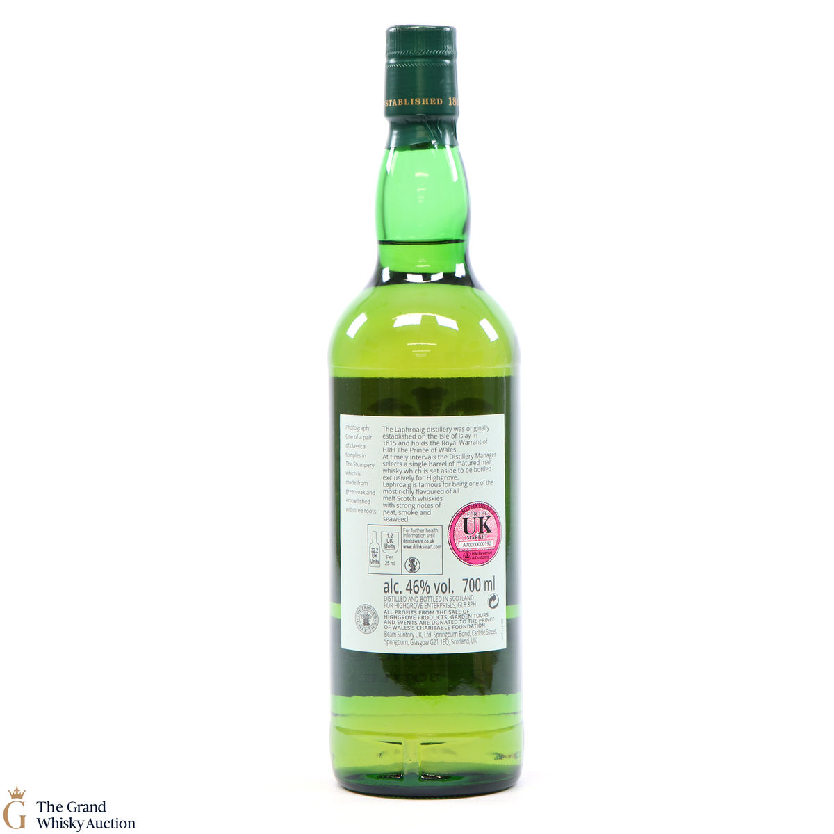 This 2006 Laphroaig was bottled in July 2019 for Highgrove House, the family residence of Charles, Prince of Wales, and Camilla, Duchess of Cornwall at 12 Years Old from single cask #2289.