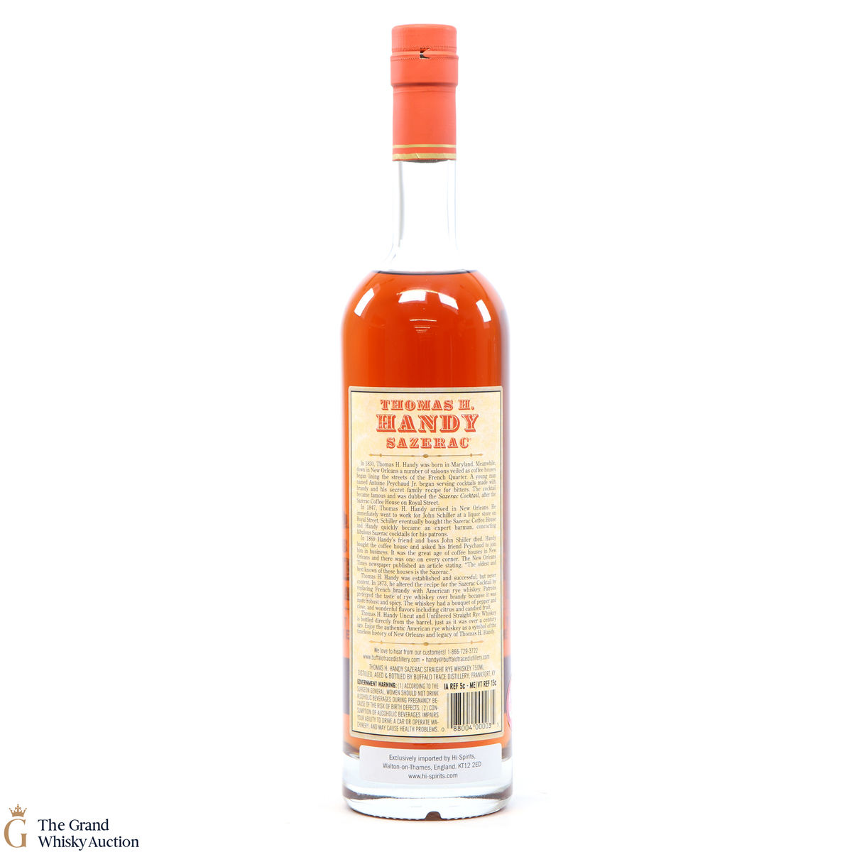 This collection is dubbed the antique collection and celebrates famous figures. The companies founder, Thomas H. Handy, is on the front of this bottle with the picture of the Sazerac Coffee House where everything started.