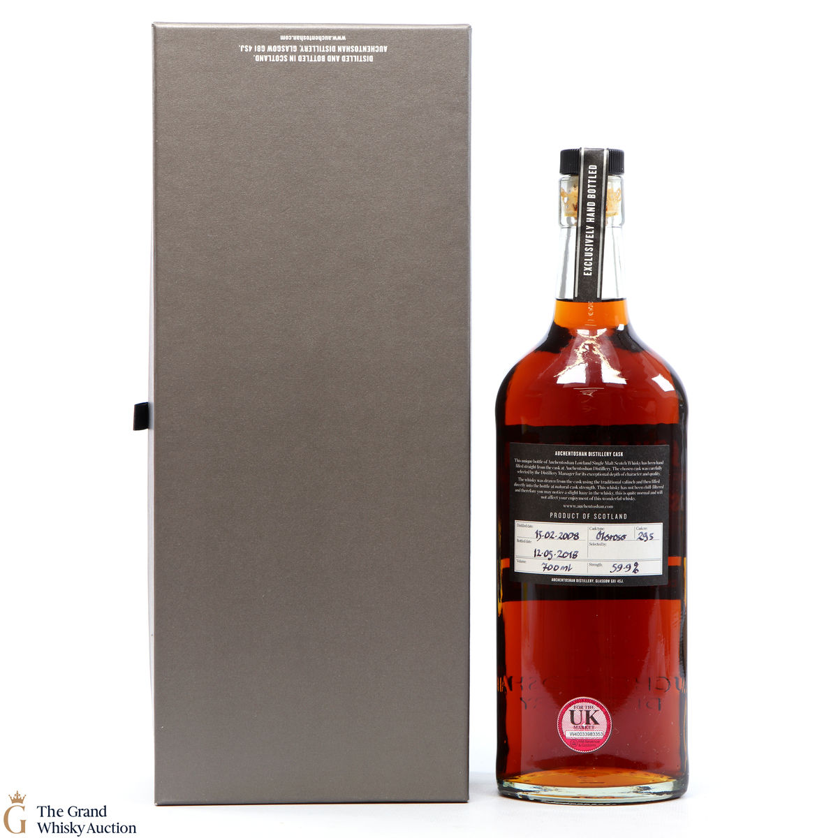 This Auchentoshan Distillery Cask was distilled on the 13th of February 2008 and was bottled on the 12th of May 2018 and bottled at 59.9%. It was matured in single oloroso cask #295.
