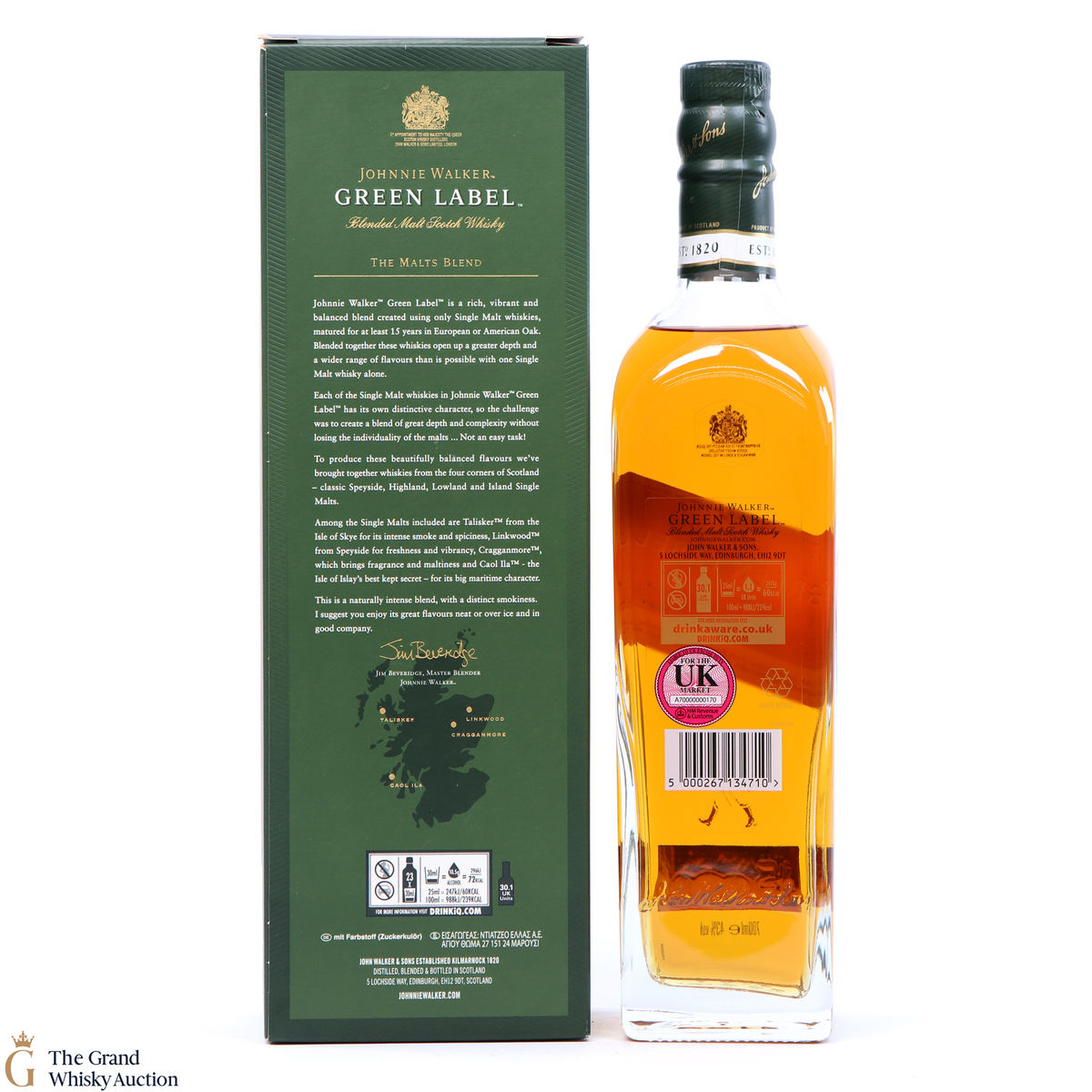 Each malt whisky is matured for a minimum of 15 years blended to give Johnnie Walker Green Label a fresh and unique flavour. The signature malts provide the key taste influences for this 15-year-old whisky. Talisker, Caol ILa Cragganmore and Linkwood are more are expertly blended to make this award-winning blend.