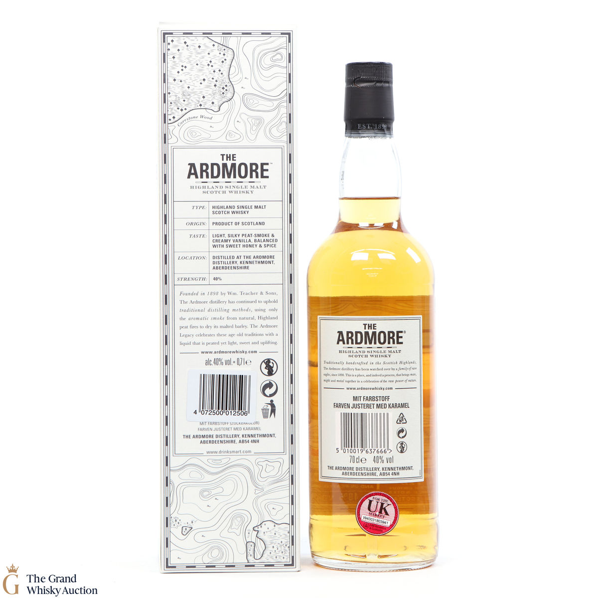 Ardmore Legacy was launched in 2014 to replace Ardmore Traditional. Ardmore Legacy is made with 80% peated and 20% unpeated malt.